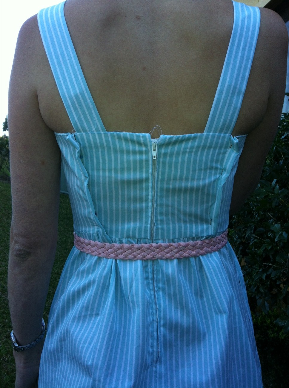 The fabric for my Hazel muslin is a cheap cotton that was on sale at Spotlight so it was not a big investment (or loss given the result). It is pretty though and I wanted to try this dress with stripes as the bodice lends itself to stripes in a very flattering way otherwise you might as well use any old summer dress pattern…. I think it would look great… if you can get it to fit…
