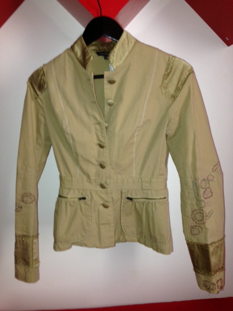 I’m a bit of a second-hand clothes and charity/thrift/op shop nut. When Barbara discovered this over a cup of coffee, she took me along to one of best second-hand clothing charity shops in Paris where I found this Tara Jarmon jacket. I’m completely in love with it. I love it’s military styling, the silk patches, the rough stitching, the naïve embroidery, the zip gathered patch pockets. I’m definitely be going to make a jacket inspired by this piece in my future…