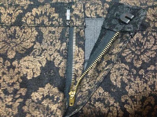 Not just any denim but Italian denim… printed with a bronze damask design… I fell in love with this Italian Printed Denim. I love the slight grunge style of the print. It’s decadent but not quite perfect, it’s not gold but bronze.