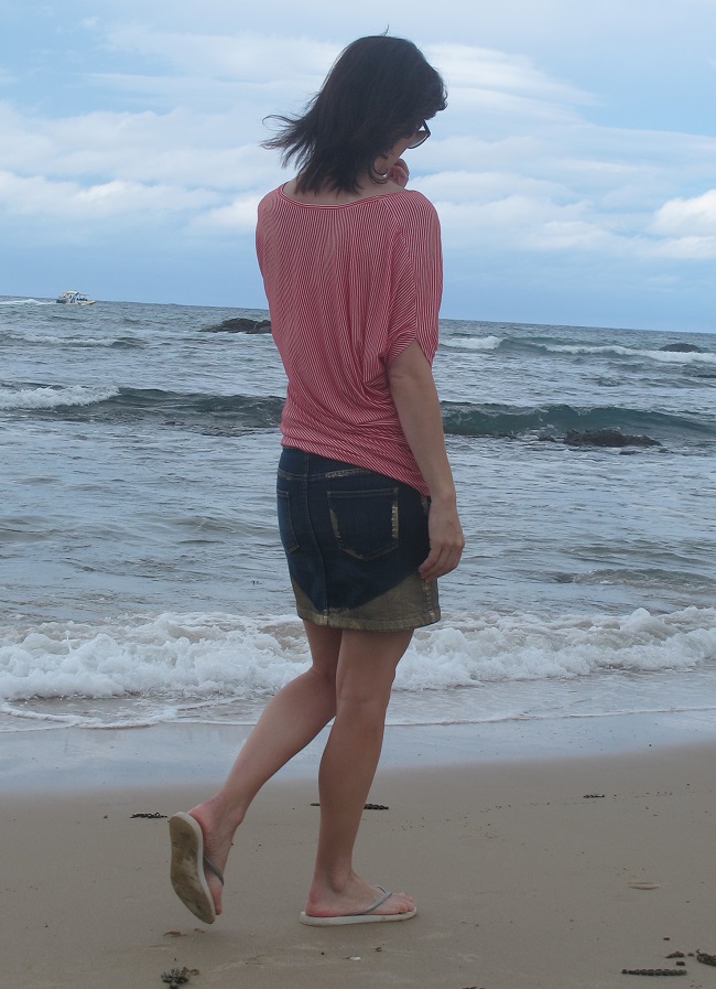 red stripe dd2 no 4_back 4 Published December 31, 2014 at 650 × 897 in A drunk Candy Cane draped t-shirt… and goodbye 2014… Drape Drape 2, Number 4. Back/side view. Drape Drape 2, Number 4. Sewn by Sew Busy LIzzy
