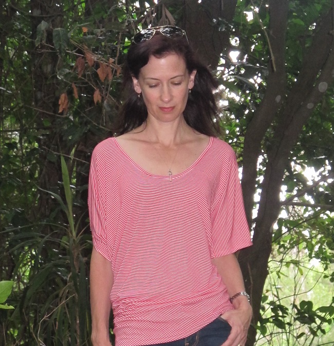 red stripe dd2 no 4_Christmas Published December 31, 2014 at 650 × 674 in A drunk Candy Cane draped t-shirt… and goodbye 2014… Christmas Day picture. I can’t ever remember being this tired on Christmas Day Drape Drape 2, Number 4. Sewn by Sew Busy LIzzy