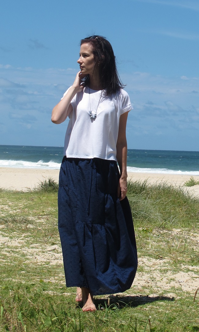 Stylish Skirts – tiered navy front 3 beach Published February 16, 2015 at 650 × 1084 in Stylish Skirts – a review and a skirt (or two) Stylish Skirts, irregular gathered skirt