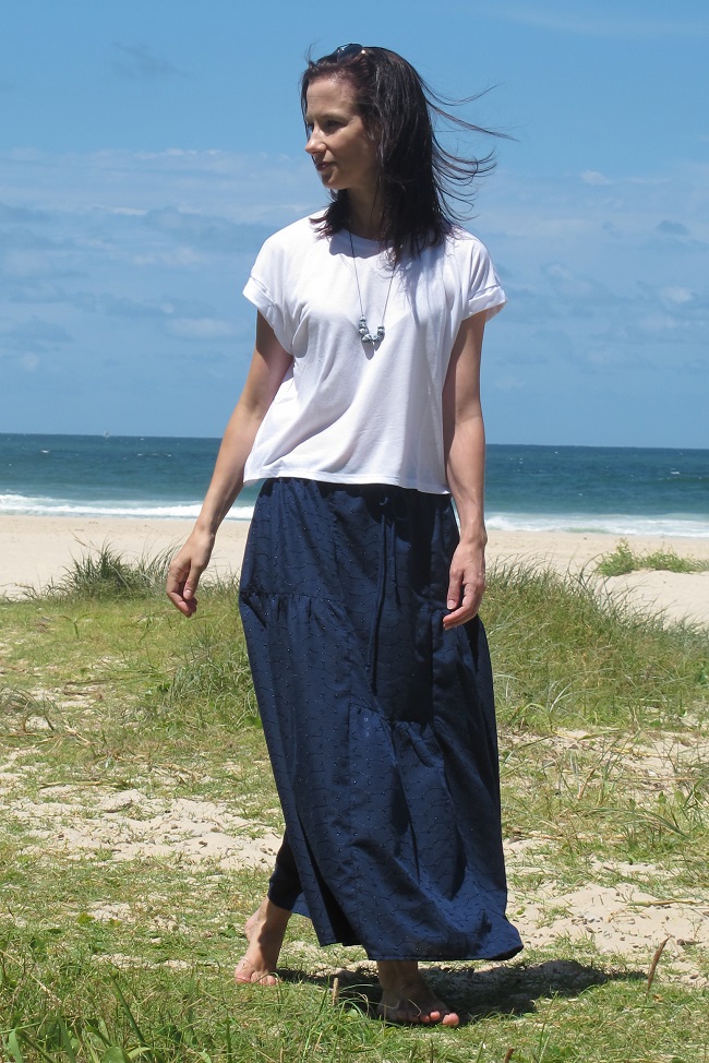 Stylish Skirts – tiered navy front 4 beach Published February 16, 2015 at 650 × 974 in Stylish Skirts – a review and a skirt (or two) Stylish Skirts, irregular gathered skirt