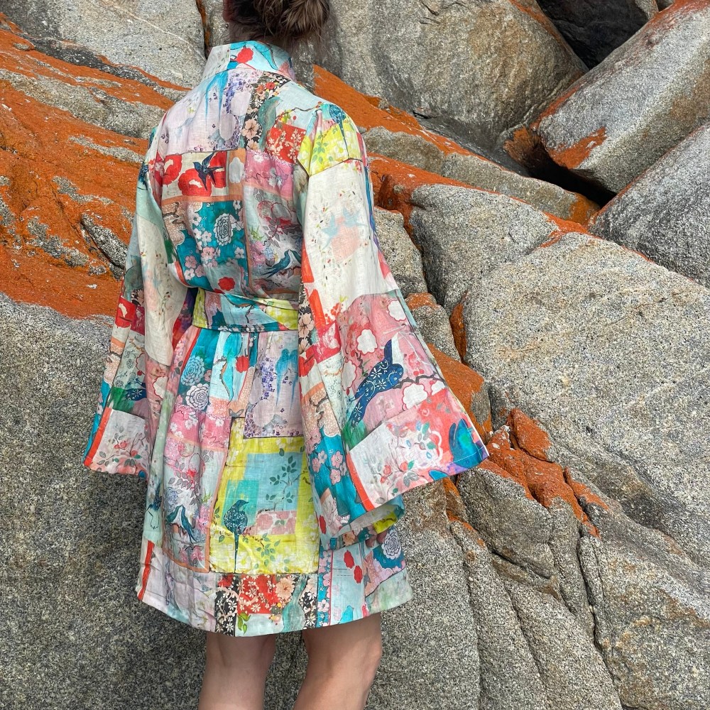 Last week I made my 5th Asaka in a stunning linen from Tessuti Fabrics. I purchased this fabric a few years ago. I fell in love with this print and I had a gift Visa card from long service employment recognition. I never knew how to spend these things. However spoiling myself with a practical dressing gown in fabulous fabric seemed a good enough idea!