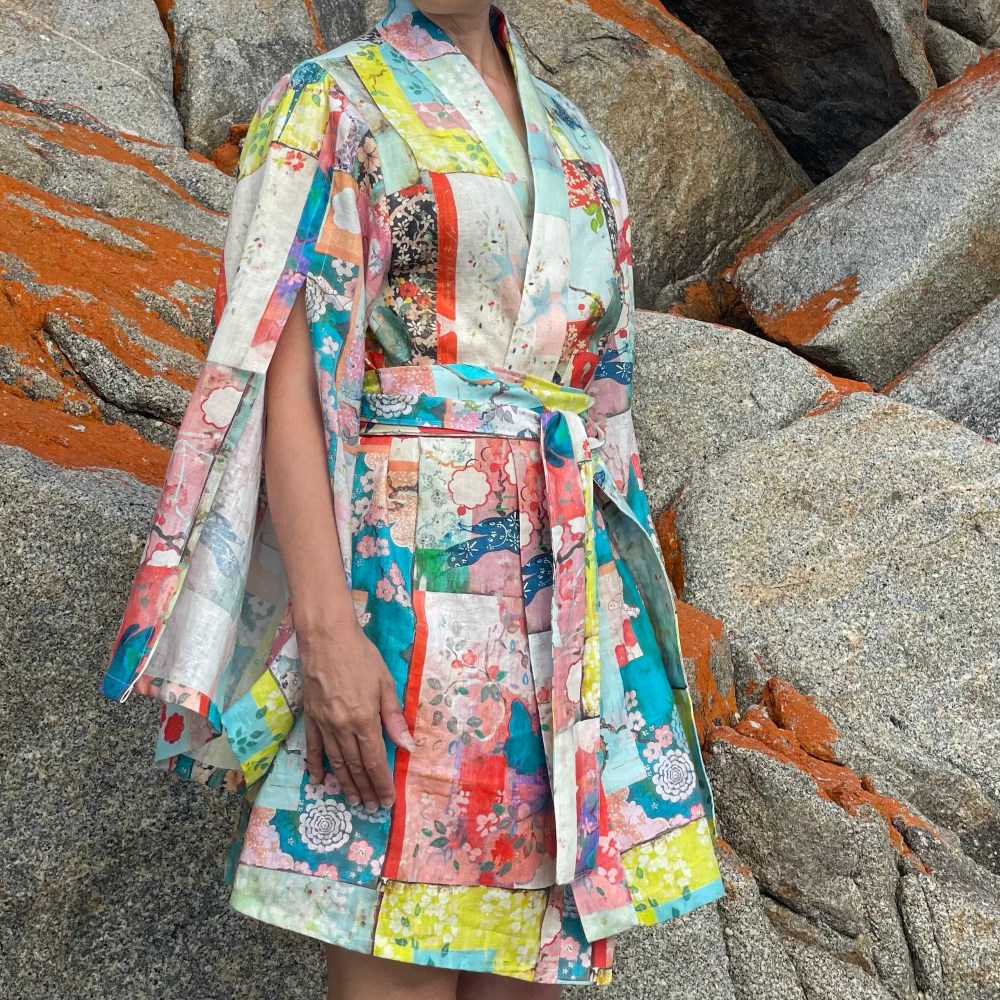 “If Romy Was A Dress” she might have been a Gorman. This dress style is reminiscent of the iconic Australian brand which favours simple dress shapes which let the fabric sing – which are often artist collaborations. Google ‘Gorman Afternoon Tea Dress’ to see what inspired this dress.